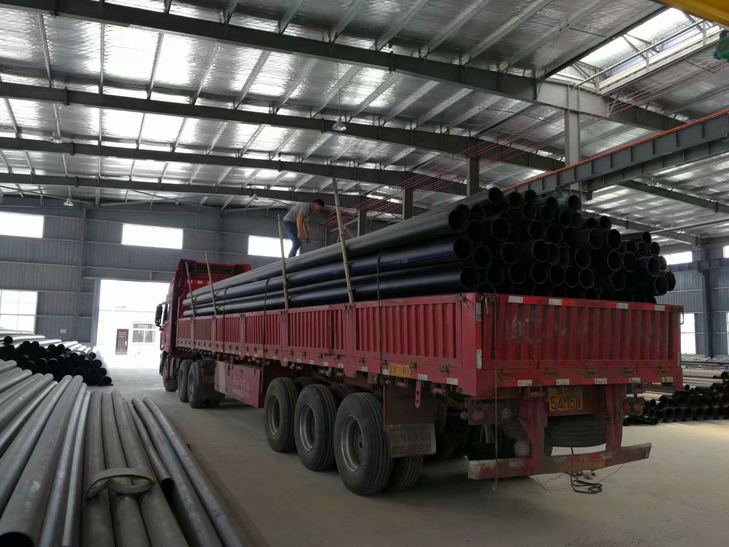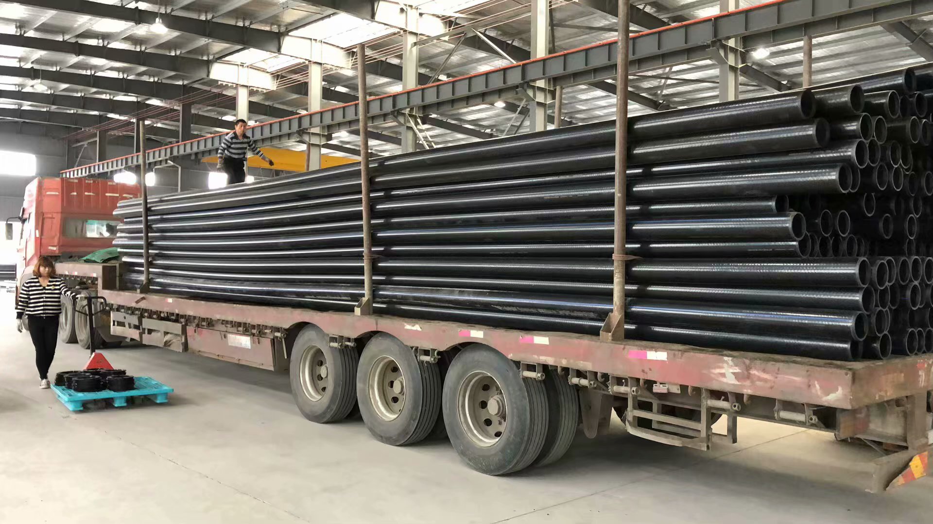 管材搬運(yùn)時(shí)必須采用軟保護(hù)吊裝帶進(jìn)行裝卸,吊裝應(yīng)吊2點(diǎn),使撓度變形不宜過大。